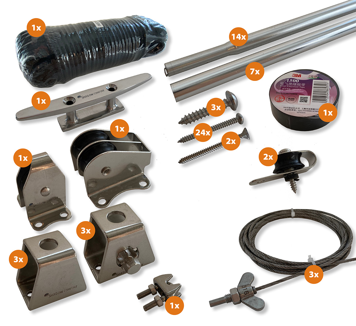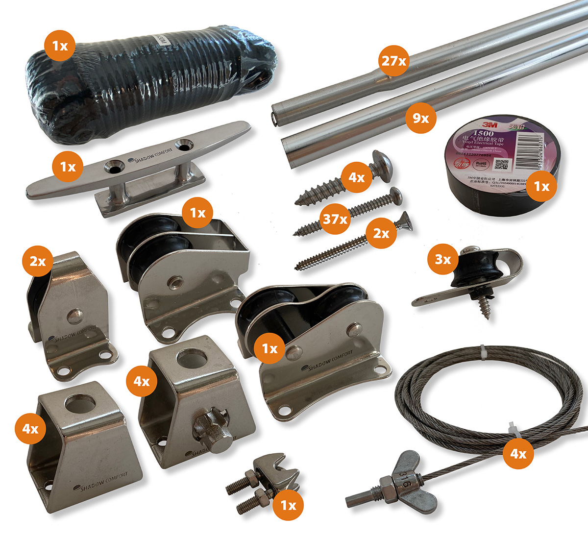 - Die Shadow Comfort-Schattentücher sind mit lauwarmem Wasser, einer weichen Bürste und etwas grüner Seife leicht zu reinigen.